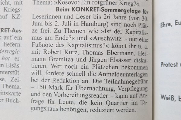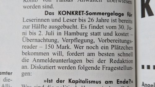 In Ausgabe 3/2000 findet sich in der Rubrik »von konkret« diese Ankündigung: