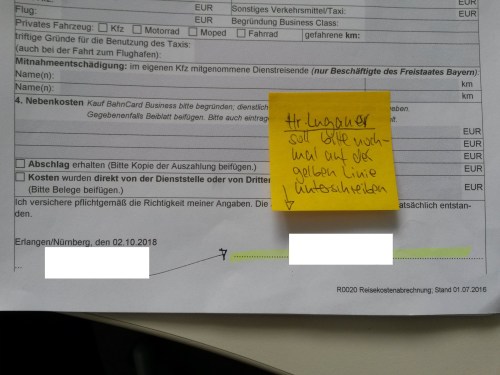 Ich habe jetzt zusätzlich auf dieser Linie unterschrieben und bete, dass die Reisekostenstelle es akzeptiert.