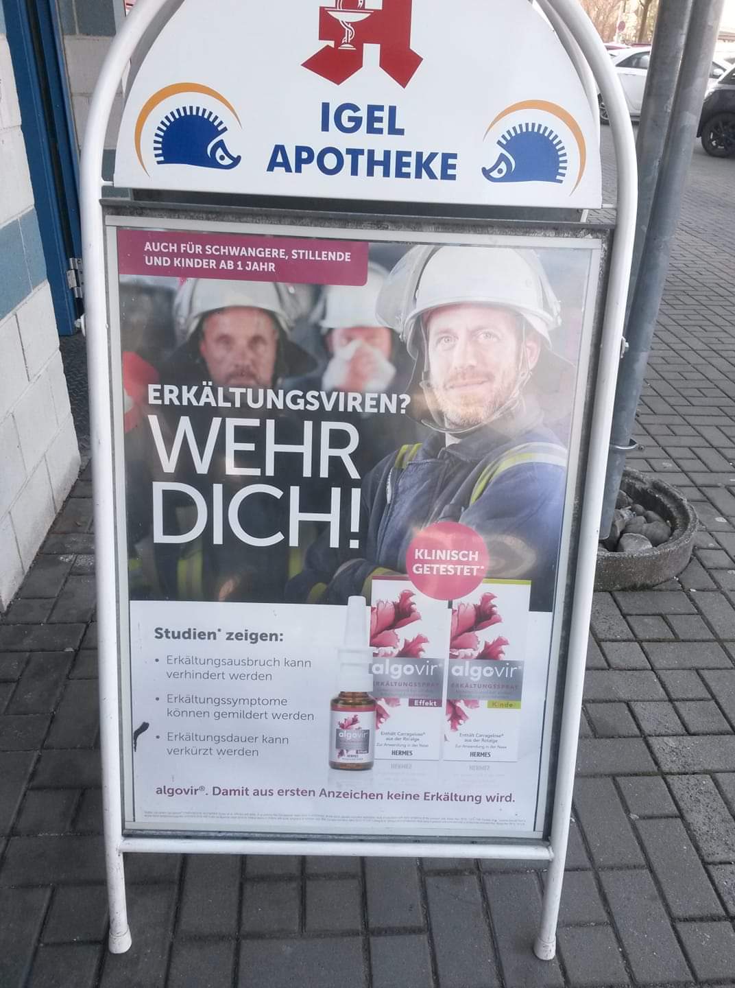 Weil rechtsextremer Terror in Deutschland wieder Normalität wird: Es ist halt auch so, dass hierzulande ›unschuldige‹ Reklame möglich ist, auf der in riesigen Lettern prangt: »WEHR DICH!« und niemand etwas dabei findet geschweige denn daran auszusetzen hat. Es ist ja nur harmlose Reklame für ein der Gesundheit zuträgliches Produkt.