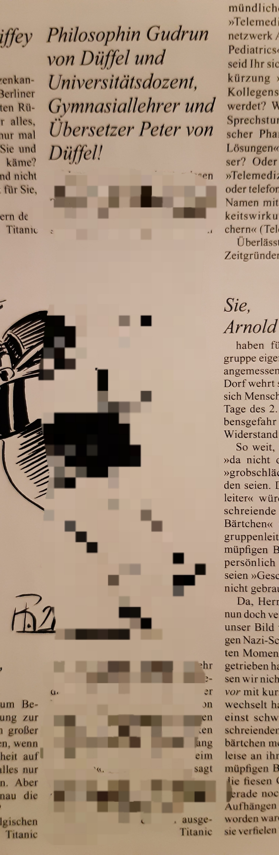 Wenn die Philosophin Gudrun von Düffel und der Universitätsdozent, Gymnasiallehrer und Übersetzer Peter von Düffel wissen wollen, was am Namen ihres Sohnes so befremdet, müssen sie sich die Titanic-Ausgabe 02/21 zulegen.