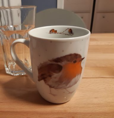 Beim Betrachten der heimischen Rotkehlchen-Tasse – die sich nicht in diesem Haushalt befindet, weil das possierliche Tierchen (?) zum Vogel des Jahres 2021 gewählt wurde – fällt mir auf, dass ich diesem Siegertier schon mal ein Gedicht gewidmet habe. Der Einfachheit halber sei es hier zitiert: