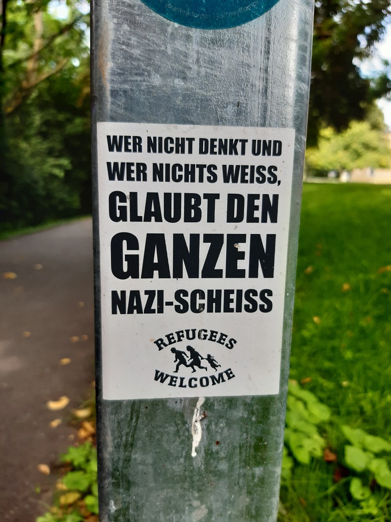 Dass gerade sie dächten und wüssten, damit gehen halt auch all jene Verachtenswerten hausieren, gegen die sich dieser Aufkleber richtet.