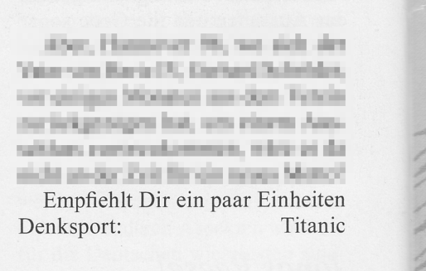 Nach einer etwas längeren Pause konnte ich mal wieder einen »Brief an die Leser« in Titanic placieren. Das Heft erscheint heute, rennet alle zu den Kiosken und kaufet zuhaufet zuhauf!