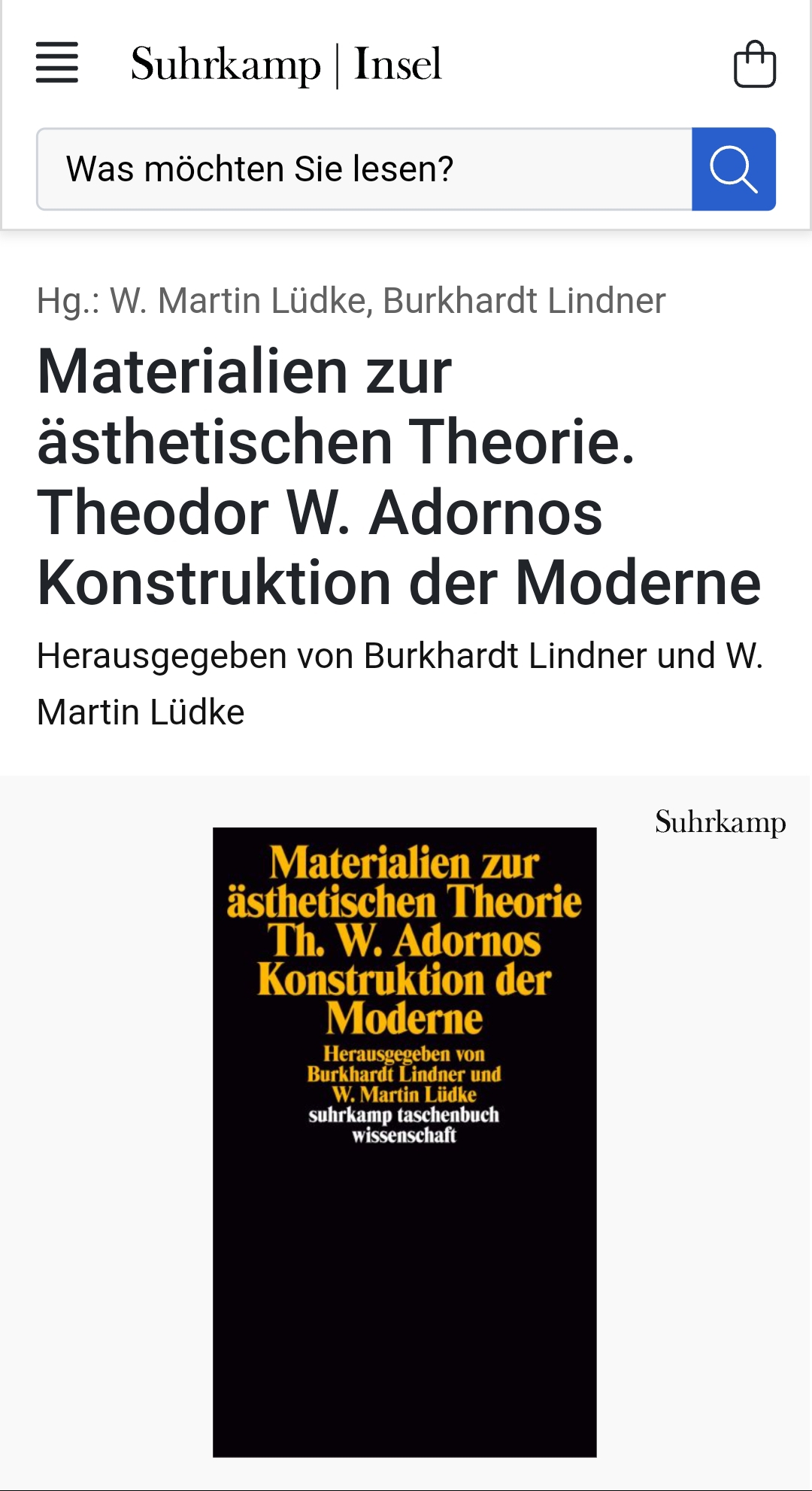 Ist es a) Materialien zur ästhetischen Theorie Th. W. Adornos. Konstruktion der Moderne oder ist es b) Materialien zur ästhetischen Theorie. Th. W. Adornos Konstruktion der Moderne? »Ach geh, da schau ich doch schnell beim Verlag nach«, denke ich, und stoße dort auf Lösung b: