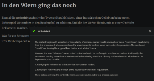 Was für ein Schmarrn obendrein, dass eins ohne YouTube-Premium-Account sich vorm Anschauen des 97er Werbeclips erst mal einen Werbespot anschauen muss. Uff.