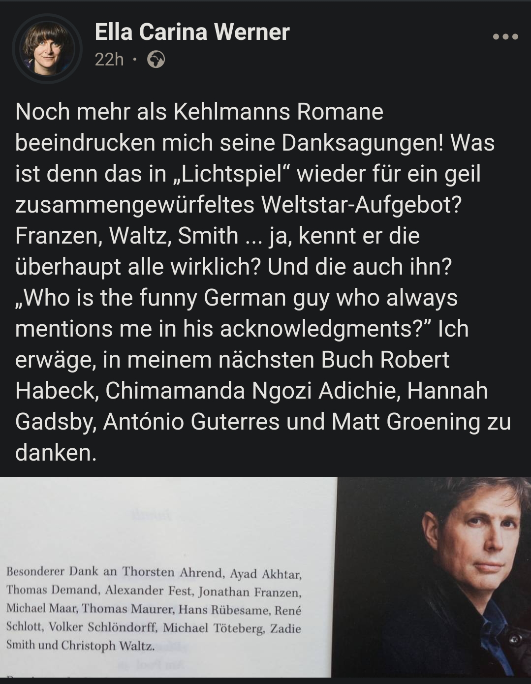 Nach all den Jahren Salon du Fromage (est. 2016!) ist es an der Zeit für eine Danksagung: Besonderer Dank geht an Ella Carina Werner, Keanu Reeves, Billie Eilish, Philip Saß, Margarete »Gretel« Adorno, Jennifer Kent, Paula Irmschler, Karoline von Günderode, Torsten Gaitzsch, Julia Ingold, Hubert Aiwanger und Jens Friebe.