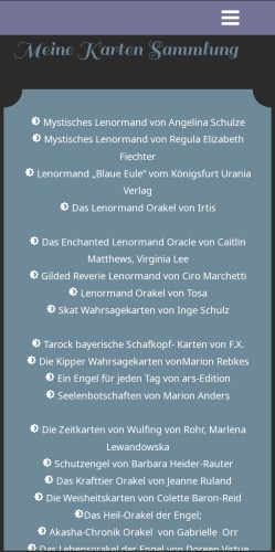 Über ein Detail muss ich schmunzeln: Die Übersicht über die Esoterikkartensammlung der Wahrsagerin. Denn sie enthält neben allerhand einschlägigen Decks auch: »Tarock bayerische Schafkopf-Karten von F.X.«, und damit das stinknormale Kartenset, mit dem in bayerischen Wirtshäusern schafgekopft, gewattet und Neunerln gespielt wird.