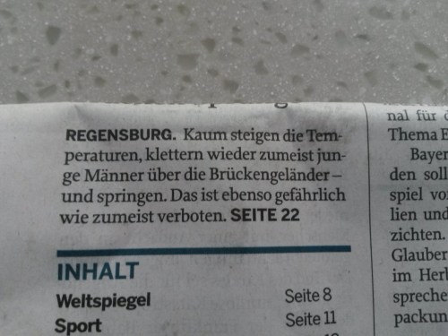 (Notabene: Gegen den Slogan »Ich bereue diese Liebe nicht« ist kaum was einzuwenden. Freilich: Als ob es an Liebe etwas zu bereuen gäbe; man sucht sie sich ja nicht aus. Aber die Verkürzung auf »ich-bereue-nicht« finde ich unsäglich.)