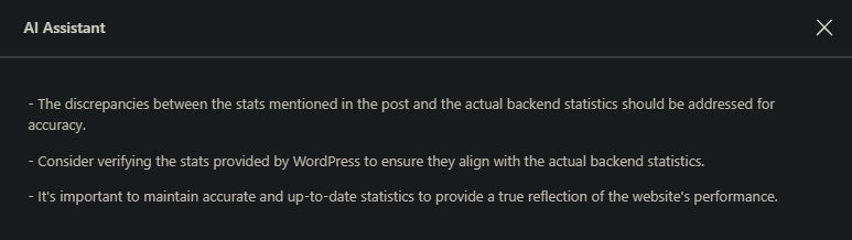 P.S.: Das sagt Wordpress’ eigener AI-Assistent zu diesem schonungslosen Entlarv-Artikel: