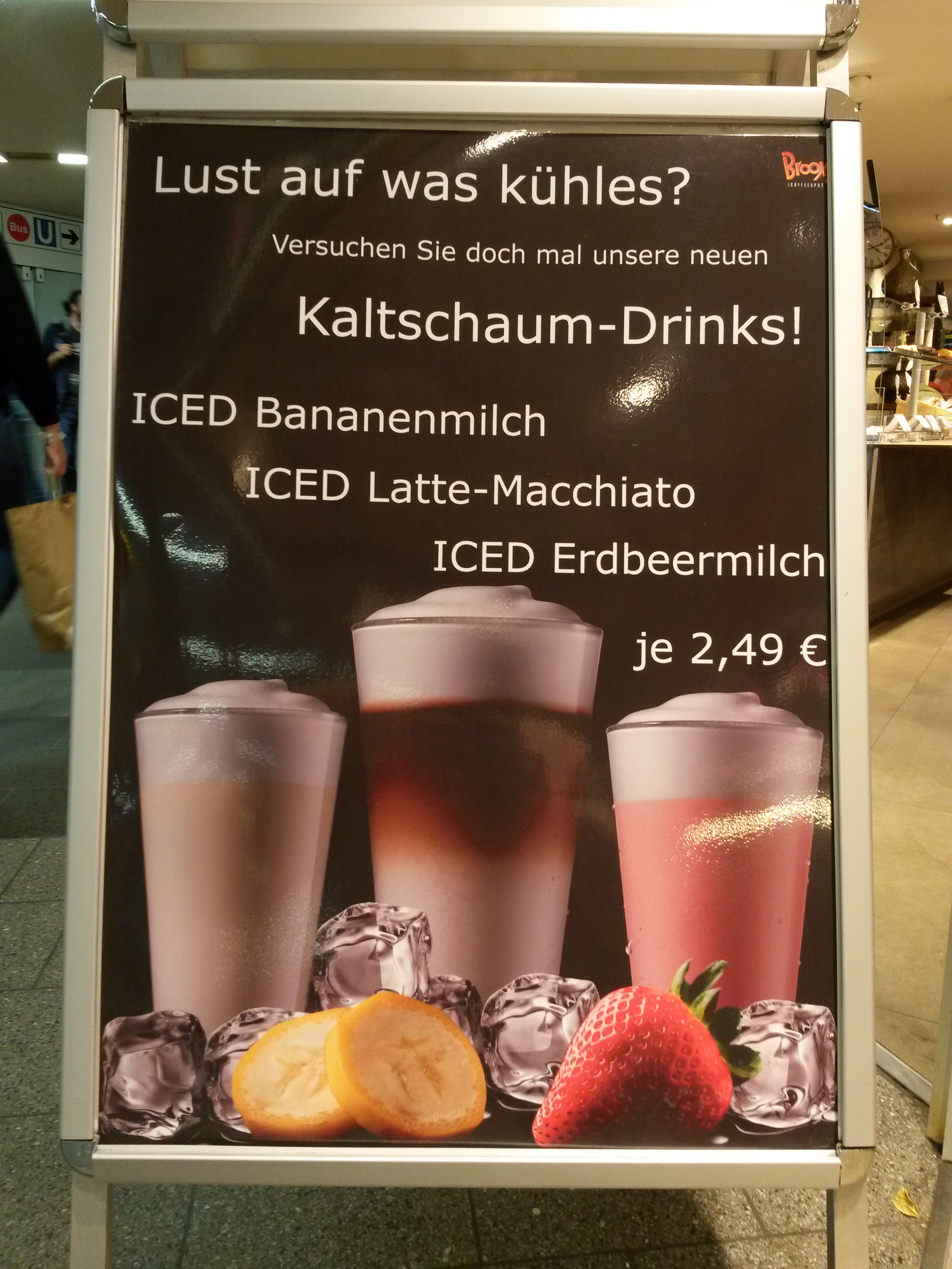 Warnung vor den neuen Kaltschaum-Drinks. Die sind nichts als dreistes Matratzen-Recycling. Das Weiße z.B. ist immer Altsperma. (»Banane«, »Latte« (›hehe‹ solche kindischen Trottel), »Milch«.)