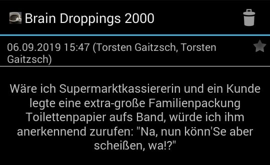 (Zu den restlichen »Braindroppings« auf Torsten Gaitzschs Blog »Kybersetzung« geht’s – wie es in den Nullerjahren hieß – hier lang: http://www.kybersetzung.net/2019/09/brain-droppings-2000.html)